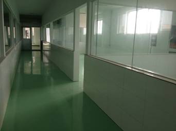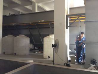 二樓樓道面貌 污水處理設(shè)施安裝中